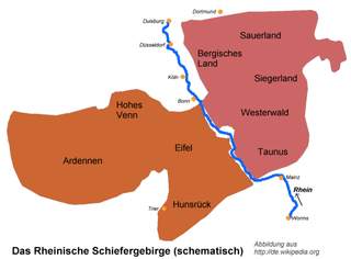 This list of mountains and hills of the Rhenish Massif (German: Rheinisches Schiefergebirge: "Rhenish Slate Mountains") is a selection of the mountains, hills and foothills of the ranges and landscapes that form the Rhenish Massif − sorted by natural regional main unit groups and heights in metres (m) above sea level (NHN).