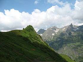 This list of mountains of the Allgäu Alps tabulates those peaks and summits with names and spot heights that lie within the Allgäu Alps and that have a prominence of over 30 metres (98 ft).[1][lower-alpha 1] and an isolation of 100 metres (330 ft) or more (rounded).