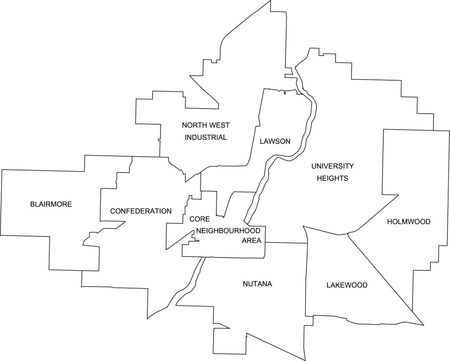 Saskatoon neighbourhood boundaries as of 2014