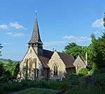 Along with an enthusiasm for restoration, another characteristic of the area in the Victorian era was the provision of chapels of ease in the extensive ancient parishes and the formation of new parishes from parts of others. Dorking expanded greatly in the 19th century, and the large parish of St Martin's Church was divided up as new churches were opened in the south of the town (St Paul, 1857) and at nearby North Holmwood (St John the Evangelist, 1875)[22] and Pixham (St Mary the Virgin, 1903). Similarly, Leatherhead's ancient parish church was supplemented by All Saints in the north of the town in 1889;[23] St George was built in 1905 near Ashtead railway station as a chapel of ease to St Giles at Ashtead Park;[16] and St Margaret, distant from Ockley village, had a chapel of ease (St John) on the village green from 1872[24] until its closure in the late 20th century. In the same era, new churches were built in villages which had none before, and parishes were created for them. Examples include Brockham Green (1848; originally in Betchworth parish),[25] Coldharbour (1848; a parish was carved out of four others) and Westcott (1850; originally in Dorking parish). Elsewhere, ruinous old churches were rebuilt or restored at Buckland,[26] Headley,[27] Oakwood Hill[28] and other villages. Churches built for specific purposes include the landmark hilltop St Barnabas' Church at Ranmore Common (1859; formerly in Great Bookham parish), provided for the Denbies Estate's owners and employees, and Holy Trinity at Forest Green (1897; formerly in Abinger parish)—built not only to serve villagers but to act as a memorial to a man who was killed in an accident.[29]