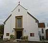 After the English Reformation, Roman Catholic worship was illegal in England for nearly 250 years until 1791,[25] and it grew slowly thereafter in comparison to West Sussex, where many large estates were owned by gentry who secretly kept the faith over many generations.[26] Ill-feeling towards Catholics apparently persisted well into the 19th century in Battle, where the 1886 Church of Our Lady Immaculate and St Michael was set well back from the street (in the garden of its presbytery) and does not have an ecclesiastical appearance.[27] In the early 20th century, bolder architectural statements were made with the Gothic Revival church at Bexhill-on-Sea and the elaborate Italian Romanesque-style church at Rye, both of which are listed buildings.[28][29] Most of the other Roman Catholic churches in Rother district are simple mid-20th-century buildings, sometimes with distinguishing architectural features such as a modernistic portico-style entrance at Sidley,[30] dalle de verre glass at Burwash[31] and a Mediterranean-style blank-arcaded tower at Little Common.[32]