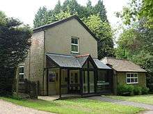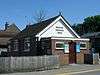Protestant Nonconformity has a long history in the district. Baptist worship has taken place at Dormansland since 1792, and the church (which occupies a building dating from 1817)[20] helped to found several others in the area—such as those at Lingfield and Smallfield (both now closed).[21] The isolated Pains Hill Chapel near Limpsfield has existed since 1823,[22] and since World War II Evangelical congregations have developed in Hurst Green[23] and Smallfield.[24] Meanwhile, the village of Newchapel was chosen as the site of England's first Latter-day Saints' Temple, named the London England Temple.[25] The main towns have places of worship serving a wider variety of denominations: the Congregational Federation can be found in Caterham,[26] Oxted has an Open Brethren Gospel Hall,[27] a Quaker meeting house[28] and a Christian Science church,[29] and both places support Roman Catholic, Methodist and United Reformed congregations. Oxted's Catholic and United Reformed churches are both Grade II-listed: the former, a "quite exceptional building" of the early 20th century, combines the Perpendicular Gothic Revival and Arts and Crafts styles,[30] while the Church of the Peace of God (the United Reformed church) is a 1930s interpretation of the Byzantine style.[31] Elsewhere, the Plymouth Brethren have a meeting room in the former goods yard next to Upper Warlingham railway station in Whyteleafe.[32]