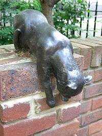 Cat statues Entrance to former Carreras Cigarette Factory, Hampstead Road, Camden 1996 51°32′00″N 0°08′22″W / 51.5334°N 0.1395°W / 51.5334; -0.1395