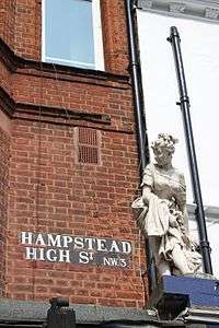 Woman High Street, Hampstead, outside No. 28A [31] 51°33′21″N 0°10′36″W / 51.55591°N 0.17672°W / 51.55591; -0.17672