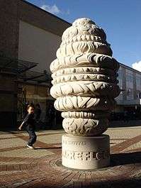 'A Point for Reflection' - Associations with water for the Riverside Shopping Centre, a droplet of clouds, rain, swirling rivulets and weaving water weeds. | Marlowes at entrance to Riverside shopping development. | 2008 | Tim Shutter | Hand carved Perryfield Whitbed Portland Stone. | [4] | 51°44′52″N 0°28′22″W / 51.747798°N 0.472687°W |