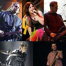 Lead vocalist Amy Lee and former-lead guitarist Ben Moody founded the band in 1995 and was accompanied by David Hodges (keyboards) from 1999 until 2002.[1] Evanescence signed with Wind-up Records and released their debut album, Fallen, in 2003, officially formed by Will Boyd (bass), Rocky Gray (drums), John LeCompt (rhythm guitar), Lee (vocals and piano) and Moody (lead guitar). Lee, Moody and Hodges are credited to have written the entire album together, while LeCompt and Gray each have writing credits for two separate songs. The album sold over 17 million copies worldwide and produced four singles, including "Bring Me to Life".[2]