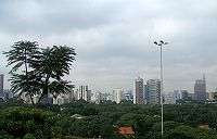 The city of São Paulo, Brazil's largest city, has an impressive skyline. With 6,467 buildings, it is considered to have the 3rd-greatest concentration of buildings in the world, behind only New York City and Hong Kong;[1] Within the city and its metropolitan area, there are 193 buildings taller than 100 meters,[2][3] mostly concentrated in the downtown along the Paulista Avenue and in the neighborhood of Brooklin. At one time, the city was home to the tallest building in Latin America, the Martinelli Building, which opened in 1929 at a height of 130 meters. Today, São Paulo is a city of low buildings, which rarely reach more than 80 meters and are mostly residential in nature. Some municipal laws limit the construction of large skyscrapers for reasons relating to vehicular or human traffic. The Mirante do Vale, the largest building in the city, is 170 meters in height and was opened in 1960. For that reason, once a neighborhood is fully occupied by skyscrapers, the city's financial center moves to somewhere else. That's why the tallest skyscrapers are located in three different regions. The city of São Paulo has the 10th highest number of buildings in the world taller than 90 meters, behind Hong Kong, New York City, Tokyo, Shanghai, Bangkok, Guangzhou, Chicago, and Singapore, respectively.[4]