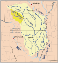 The Little Missouri River, or Little Mo, is a 147-mile-long (237 km)[1] waterway that runs from the Ouachita Mountains of southwest Arkansas into the rolling hills area in the surrounding countryside.