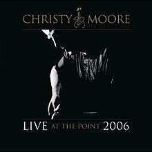 Live at the Point (2006) is the fourth live album from Irish singer-songwriter Christy Moore. This two-CD set contains music from concerts at the Point Depot in Dublin on 29 December 2005, 30 December 2005, 5 January 2006, and 6 January 2006. The album features Declan Sinnott on guitar. There is a DVD, Christy Moore Live in Dublin 2006, containing the songs from the first CD.