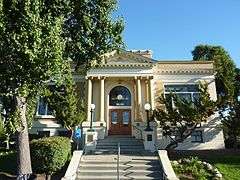 The new building opened in 1911[2] and continued to serve as the main public library until 1966, when the city built a new central library in the Civic Center on South Livermore Street. The original structure, which was built in the Classical Revival architectural style, still stands and now houses the Livermore Heritage Guild's History Center and Museum. The building sits in the middle of a square block of parkland bounded by 3rd Street on the north, J street on the east, 4th Street on the south, and K street on the west. The park is the site of a weekly farmers' market that draws many visitors who buy locally grown produce and listen to music performed by local artists.[3] The building and park are managed by the Livermore Area Parks and Recreation District (LARPD).[4]