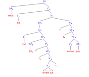 | If CP has the feature +q, movement of a wh-phrase to a position outside of the clause cannot occur.[1]:271 |