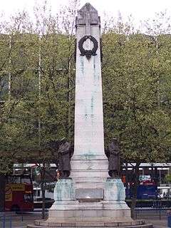 The London and North Western Railway War Memorial is a First World War memorial outside Euston railway station in central London, England. The memorial was designed by Reginald Wynn Owen, architect to the London and North Western Railway (LNWR) and commemorates employees of the LNWR who were killed in the First World War. The memorial is today a grade II* listed building.[1]