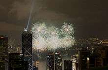 Lunar New Year Fireworks Display in Hong Kong is an annual event to celebrate the Chinese New Year in Hong Kong. It is held on The Second Day of Lunar New Year above the sky of Victoria Harbour in the evening.