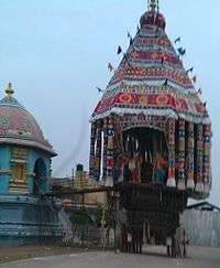The temple priests perform the pooja (rituals) during festivals and on a daily basis. Like other Shiva temples of Tamil Nadu, the priests belong to the Shaivaite community, a Brahmin sub-caste. The temple rituals are performed six times a day; Ushathkalam at 6:00 a.m., Kalasanthi at 8:00 a.m., Uchikalam at 10:00 a.m., Sayarakshai at 6:00 p.m., Irandamkalam at 8:00 p.m. and Ardha Jamam at 9:00 p.m. Each ritual comprises four steps: abhisheka (sacred bath), alangaram (decoration), neivethanam (food offering) and deepa aradanai (waving of lamps) for both Mahalingeswarar and Pirguchuntaragujambigai. The worship is held amidst music with nagaswaram (pipe instrument) and tavil (percussion instrument), religious instructions in the Vedas read by priests and prostration by worshippers in front of the temple mast. There are weekly rituals like somavaram and sukravaram, fortnightly rituals like pradosham and monthly festivals like amavasai (new moon day), kiruthigai, pournami (full moon day) and sathurthi.[22] The most prominent festival of the temple, Thaipoosam, is celebrated for ten days during the Tamil month of Thai.[7][22] The festival deity of Mahalingeswarar and his consort circumambulate the temple and the streets in the village in different vehicles. The festival ends with Theerthavari on the last day. During the Tamil month of Vaikasi, Tirukalyanam (sacred marriage), Ambal Tapasu (penance of Ambal), Ambal Thannai thaane festivals are celebrated.[22]