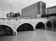 Main Street Bridge is a historic stone arch bridge located at Rochester in Monroe County, New York. It was constructed in 1857 and spans the Genesee River. It has five segmental arches with spans of 30 to 42 feet (9.1 to 12.8 m) and rises of 8–11.5 feet (2.4–3.5 m).[2]