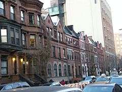 Manhattan Avenue–West 120th–123rd Streets Historic District is a national historic district in Harlem in New York City. It consists of 113 contributing residential rowhouses built between 1886 and 1896. The buildings are three story brownstone and brick rowhouses over raised basements in the Queen Anne, Romanesque, and Neo-Grec styles.[2]