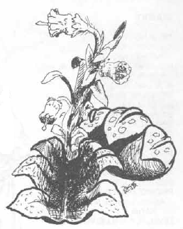A mantrap is a giant plant that attracts prey by scent, entrapping and dissolving its victims in acidic secretions. Its pollen causes creatures to become fascinated by the odor, and proceed to the body of the plant and voluntarily climb into one of its leaf traps, which close and firmly entrap the victim.