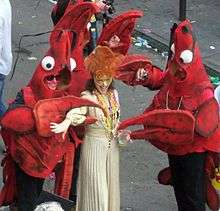 Lake Charles hosts a family-friendly Mardi Gras celebration with nine parades.[40] With over 50 krewes, it is second only to New Orleans in the number of krewes in Louisiana.[41] The Lake Charles Mardi Gras celebration is unique in that it is the only place in Louisiana where the public is invited to see the costumes of the all the krewes in one place, at the Lake Charles Civic Center.[42] Mardi Gras began in Lake Charles as early as 1882 when King Momus landed on the lakefront to begin the celebration.[43] With the onset of the World Wars, Mardi Gras in Lake Charles was not celebrated as much, but was revived in the latter part of the century. This celebration begins in Lake Charles on January 6 each year. The last parade is the Krewe of Krewes Parade in downtown Lake Charles.[44] Mardi Gras in Lake Charles regularly draws 150,000 people.[45] In addition, Mardi Gras can be enjoyed in Lake Charles year round at the Mardi Gras Museum of Imperial Calcasieu, which features elaborate costumes and an interactive float.[46] This museum houses the world's largest collection of Mardi Gras costumes.[47]