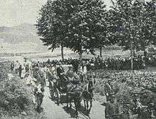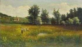 Vayreda is typically identified as a landscape painter[91] or as a costumbrista,[92] though his works fall into four major topic categories: landscapes, religion, history and customs, often combining some if not all of the above.[93] Landscapes are deeply set in the hilly Alt Garrotxa ambience, presenting local rural countryside with meticulous and accurate description. Featuring sunlighted sorted fields and wooded mountains they avoid any sign of decay or derangement. Despite what is described as their realism,[94] they deliver impression of perfect natural order;[95] due to neat and clean landscape contemporaries compared them to Japanese drawings.[96] Some value his landscapes higher than those of his brother Joaquím,[97] others deem them inferior.[98] In a number of paintings landscape is the setting for local rural scenes, always scrupulously implanted in local customs and never containing a tiny hint of discord.[99]