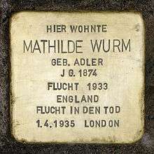 - 1 2 3 "Mathilde Wurm (geb. Adler)" (in German). Stolpersteine in Berlin. Retrieved 25 July 2015.