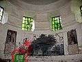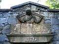 Damaged sandstone relief above the portal to the ossuary