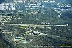McKinley National Park Airport (IATA: MCL, ICAO: PAIN, FAA LID: INR, formerly 5MK) is a public-use airport located two nautical miles (3.7 km) of McKinley Park,[1] in Denali Borough, Alaska, United States. It is owned by the U.S. National Park Service[1] and is located at the Denali National Park and Preserve (previously Mount McKinley National Park).