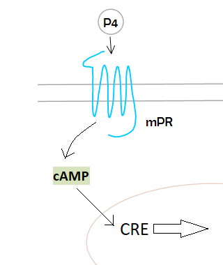 As the name says, mPRS are a group of proteins with a receptor function. This determines its location in the cell, the membrane. MPRs recognise some specific substances and facilitate the entrance of these substances inside compartments. Specifically, this receptors allow the entrance to the cell, therefore they are found in the plasmatic membrane. Studies have not revealed significant information about its structure so scientists still do not know exactly how this molecules are. In contrast, studies of the translated cDNAs based on the structure suggest they encode seven transmembrane domains. It also shows that mPRs have high affinity (Kd= 20-30 nm) saturable binding for progesterone – Kd is a constant of every enzyme which says the concentration of ligand needed in order to obtain the half of the saturation. Scientists went further on the study of the binding to the γ-subtype, revealing a specific binding for progesterone with a rate of association and dissociation of t1/2=2–8 minutes. MPRs have a molecular mass of approximately 40 kDa.[16] This results suggest that it may exist a new family of steroid receptors, also with the characteristics of G protein-coupled receptors. Another fact that suggests that this mPR subtype may be a G protein-coupled receptor is that it functions as the intermediary in progesterone induction of the maturation of oocyte meiotic maturation in teleost fishes.[18]