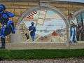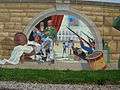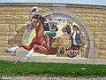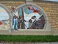 The Mississippi River Tales is a mural containing 24 panels covering nearly 18,000 square feet (1,700 m2) of the 15-foot (4.6 m)-high downtown floodwall in Cape Girardeau, Missouri. It illustrates the history of the area beginning with the Native Americans who inhabited the area between 900 and 1200. Each panel tells a story: Louis Lorimier platting the city in 1793, the transfer of Upper Louisiana from France to the United States in 1804, Missouri gaining statehood in 1821, the coming of the railroad in 1880, the Big Freeze of 1918-19 and the completion of the Bill Emerson Memorial Bridge, among many others. The paintings are in a style similar to that of painter Thomas Hart Benton. (Pamela Selbert, Chicago Tribune, November 18, 2007). The mural was painted by Chicago artist Thomas Melvin,[1] in collaboration with several local artists, and was dedicated at a public ceremony on July 7, 2005.