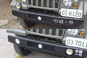 While there are no variants to either the Kyū and Shin Light Trucks, a small numbers were produced with small megaphones, roof-mounted single beacons and grille flashers.[20][21] The Light Trucks were painted in white as they were exclusively used by JSDF military police units.[20][21][22]