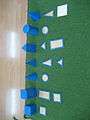 - Ten Geometric three-dimensional shapes made from wood and usually painted blue. The shapes are: