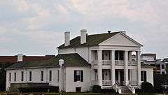 It was built by Robert Irvin Moore and includes Greek Revival architecture.[1]