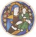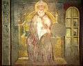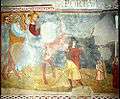 There is another series of frescoes of great emotive and narrative quality, representing Jesus among the Doctors, the Baptism, the Virgin and Child Enthroned, Saint Catherine of Alexandria upon the Wheel, Saint Martin and the Pauper, Jesus entering Jerusalem, and the Miracle of the reanimation of Napoleone Orsini by Saint Dominic, showing the young man falling from his horse. These works, together with the Visitation, have been attributed to the so-called First Master of Abbey of Chiaravalle, an anonymous artist active in Lombardy circa 1320-30, and known only through these works, as well as frescoes in San Marco, Milan and in the eponymous Abbey of Chiaravalle.