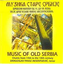 Music of Old Serbia is an album by soloist Dragoslav Aksentijević-Pavle with Ensemble Renaissance, released in 1987 on the PGP RTs label (re-released in 1997). Most of the material from this album is a remaster from Music of the Old Serbia, only this edition is dedicated exclusively to the Medieval Serbian chant and important members of the Serbo-Byzantine school.