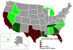 While the number of bowls had remained constant for three years, the NCAA approved three additional bowl games to be played in 2006-07, the most notable in Toronto, Ontario, called the International Bowl, which became the first post-season college football game to be held outside the USA since the Bacardi Bowl in Cuba (last played in 1937); the Hawaii Bowl is the only current game played outside the contiguous 48 states. In addition, two additional games - the Papajohns.com Bowl in Birmingham, Alabama and the New Mexico Bowl in Albuquerque, New Mexico were added, and two additional at-large bowl spots opened in the Bowl Championship Series, which added a fifth game, a stand-alone national championship game. These moves, along with the addition of a permanent 12-game regular season schedule, aimed at ameliorating the surplus of bowl-eligible teams experienced in recent years, allowing more teams with winning records to partake in season-ending football trips.