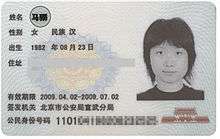 - ↑ Note: The character which appears on the ID card is a Simplified Chinese variant character of