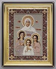 On March 15, 2012 Natalia Valevskaya supervised the opening of embroidered Orthodox icons exhibition at the Museum of Cathedral of Christ the Saviour in Moscow.[2] The exhibition consisted of works by an art studio created by Natalia Gorkovenko. In mds 2000's Gorkovenko and her apprentices started the revival of an ancient Russian tradition of religious goldwork and jem embroidery. Every icon required several women working on it for 3–7 months. The ready icons have been framed in modern molding or in restored ancient kiots (icon cases). The studio hires an antiquer who restores wooden kiots and gold-plated casings.