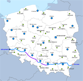 | Major cities: | Legnica, Wrocław, Opole, Gliwice, Katowice, Kraków, Tarnów, Rzeszów | |||