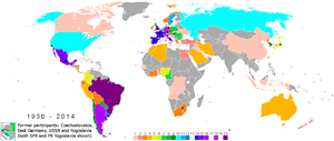 *This total number of teams which have participated in the World Cups through 2014 is 77, using FIFA's view on successor teams (e.g., Russia is a successor of USSR and not a separate team, whereas Ukraine is a newer separate entity).