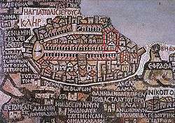 - ↑ Y. Tsafrir, “The Holy City of Jerusalem in the Madaba Map.” in The Madaba Map Centenary 1897-1997. ed. by Michele Piccirillo and Eugenio Alliata (Jerusalem, 1999), 158.