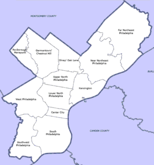 - 1 2 3 4 The Political and Community Service Boundaries of Philadelphia, Philadelphia City Planning Commission, June 2004.