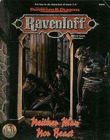 Trenton Webb reviewed Neither Man nor Beast for Arcane magazine, rating it a 9 out of 10 overall.[1] He considered being stranded on an island that is "quiet - too quiet..." to be "a classic kick off for a classic scenario".[1] He found that "death is a very real option, as really it should be for any poor soul that becomes marooned here in the Demi-Plane of Dread".[1] He found it hard to describe the adventure as "the fun of this scenario relies heavily on intricately linked secrets, which even if alluded too would ruin the game" and that "even the island's name contains clues to its true nature", suggesting that the fun "is in the finding out, though, and the excitement in surviving to tell someone just what it was you found."[1] Ramshaw concluded by saying that "Neither Man Nor Beast is an elegant standalone adventure. It could slot into non-Ravenloft campaigns easily - everyone goes to sea eventually - but it's best for folk who already know the Demi-Plane of Dread. For when the island's secret is revealed they'll know precisely how slim their chances are."[1]