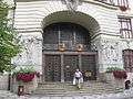 The hall stands in Virgin Mary Square.[1] This was the site of a Romanesque church until 1798. In 1904 the city council announced a competition to design a new city hall. The architect Osvald Polívka was announced as the winner in 1906.[2] The new city hall was constructed in 1908 – 1911 based on Polívka's Art Nouveau plans.[3] There were a few changes during the construction when it was realised that the floor area needed to be increased and the King also had a view.[2]