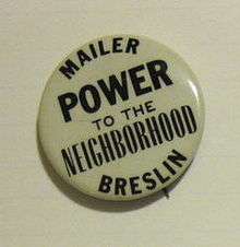 - ↑ Mailer-Breslin Campaign handbill (1969). (Image:Mailer-Breslin-Handbill-Back.jpg accompanies article.)