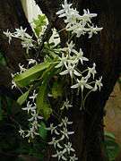 In the tropical greenhouse a variety of tropical and subtropical plants from all over the world can be found. Some of the plants include a variety of food and medicinal plants including Coffea arabica (coffee), Camellia sinensis (tea), Vanilla planifolia (vanilla), Saccharum officinarum (sugarcane), Cinnamomum zeylanicum (cinnamon), Oryza sativa (rice), Theobroma cacao (cacao), Siphonochilus aethiopicus (wild ginger), Warburghia salutaris (pepper bark tree) and Piper nigrum (pepper). The tropical greenhouse also houses many other exotic plants from a variety of families most notably the Orchid family. Many indigenous epiphytic orchids such as Ansellia africana (leopard orchid) and Mystacidium capense, can be found in this greenhouse. Other interesting plants on display include Amorphophallus titanum (giant corpse flower), Hydnophytum formicarum (ant plant), Heliconia humilis (lobster plant), Nepenthes alata (pitcher plant) and Ravenala madagascariensis (travelers palm).[1] In 2010 Victoria cruziana (giant Amazon waterlily) was also successfully grown in the tropical greenhouse which drew numerous curious visitors to the Garden. This was the first successful recorded cultivation in many decades for South Africa.[7][8]