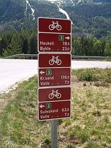 - ↑ "Syklist Velkommen – tips til sykkelferien: National cycle routes, Page 1". Retrieved 4 March 2014.