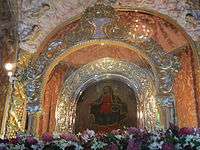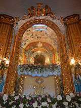 ![]() The image of the Our Lady of the Rosary enthroned at the altar of the Rosario Church in Cavite | |
