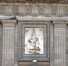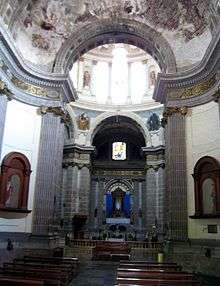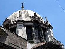 Its major feature is the exceptional size of its dome, the largest built in Mexico City during the colonial period.[1] The dome allows for a cupola that measures 30 meters wide and 15 meters high.[4][6] The side of this dome requires the church to have large, thick walls and buttresses to support its weight.[4] In Neoclassic style, the towers reproduce the main lines of the body of the church and the small pediments, lanterns, ribs and cross all adhere to the lines of the great dome.[1]