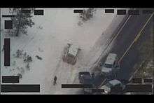 The militants' convoy consisted of a white 2015 Dodge Ram pickup truck, driven by Robert "LaVoy" Finicum, followed by a dark-colored Jeep.[128][129] Vehicles driven by the FBI and the Oregon State Police pulled in behind the Jeep. The driver of the Jeep pulled over and he and his passengers, Ammon Bundy and Brian Cavalier, surrendered peacefully and were taken into custody. Finicum kept driving, followed by the authorities, but eventually stopped with police cars behind his truck. The police launched a round of 40mm foam-nosed pepper spray at the vehicle.[29] Ryan Payne exited Finicum's truck and surrendered peacefully, also surrendering a handgun holstered on his right hip. Shawna Cox, a passenger in Finicum's truck, recorded cell phone video of Finicum shouting to police that he will ignore their orders and drive away.[130] Other cell phone video footage shot by Ryan Bundy, another passenger, also showed Finicum taunting officers and suggesting they should shoot and kill him.[131][132]