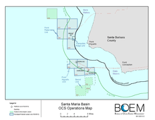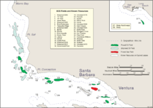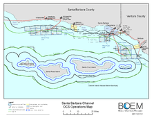 - ↑ Oil Fields of the Santa Maria Basin and Adjacent Offshore Areas, California, by Greg Croft Inc. Article includes a map of known oilfields offshore of Santa Barbara County. Accessed 03/18/2014