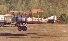In 1971 a replica was produced of the 1910 Short S.29 using a 60 hp ENV V-8 engine.[7] An accurate Sopwith Dolphin reproduction was built by Palen, the first known airworthy reproduction of the Dolphin ever known to have been attempted. Powered by a vintage direct-drive Hispano-Suiza V-8 engine, this aircraft regularly flew at Palen's weekend air shows from 1980 onward. In September 1990, the aircraft's engine suffered a fuel pump failure, resulting in a crash landing into the trees surrounding the Old Rhinebeck museum's airstrip, with little damage to the reproduction Dolphin's airframe and no injuries to the pilot.[8] The aircraft never directly struck the ground in the crash, and largely remained suspended in the tree canopy after the accident. The Dolphin was placed on static display until November 2007, when Old Rhinebeck Aerodrome began restoring it to flying condition. When completed, the aircraft will once again be painted in the markings of No. 19 Squadron.[9]